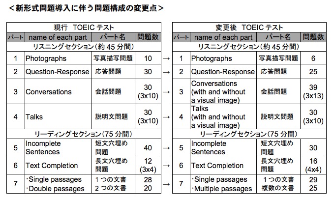 まずリスニングでは,Part 1(写真描写問題)とPart 2(応答問題)が減り,Part 3(会話問題)が増えます。